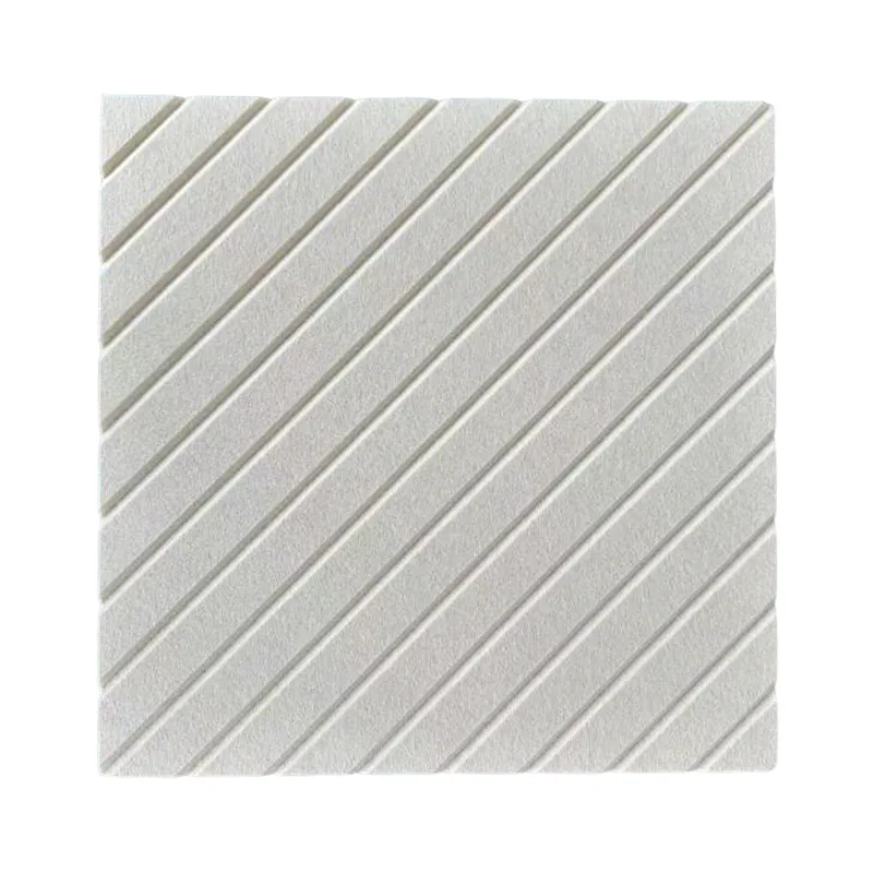 Нашите висококвалитетни акустични панели од филц во беж V-обрез користат 100% полиестерски влакна како основен материјал, со деликатна текстура со V-сечење на површината, што се чувствува меко и удобно на допир. Внатрешноста е исполнета со фини микропори кои ефикасно го задржуваат звукот при удар, спречувајќи рефлексија и одек. Ова не само што го решава ехо-шумот, туку и ја подобрува естетиката на ѕидот со неговата разновидна беж боја, осигурувајќи дека намалувањето на бучавата не е во спротивност со вашиот стил на декор – практично и убаво!